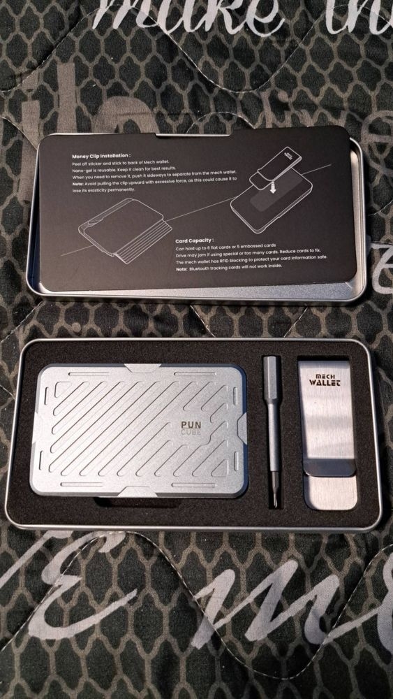 привет👋 итак... по комплектации. презентабельно упакован. металлический кейс. внутри кардхолдер, отвертка, клипса, пакетик с болтиками, буклетик. будем тестить🤟🤟🤟