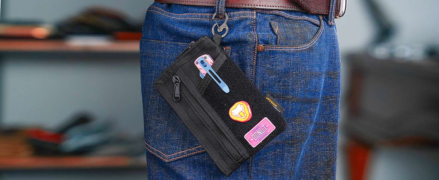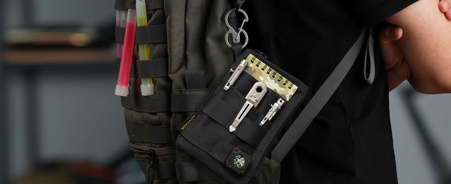 EDC кошелек-органайзер (пауч) VIPERADE® VIPERADE® VE36-UK Black (Черный). Органайзер имеет 3 слота под узкие предметы (нож, ручка и т. п.), один солт вмещает в себя телефон или паспорт и имеются 2 кармана на молниях YKK® для ценных вещей (купюры, монеты, банковские карты), так же имеется многофункциональный солт. В верхней части пришиты две петли из нейлонового 550-го паракорда для крепления грудного ремня (для ношения на груди).