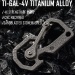 Изделие выполнено методом точной обработки на станке с ЧПУ из титанового сплава Ti-6Al-4V толщиной 4 мм. Пескоструйная обработка внешней поверхности придаёт карабину матовую текстуру, улучшает износостойкость и обеспечивает уверенный хват. Цельная конструкция делает аксессуар лёгким, но при этом исключительно прочным.