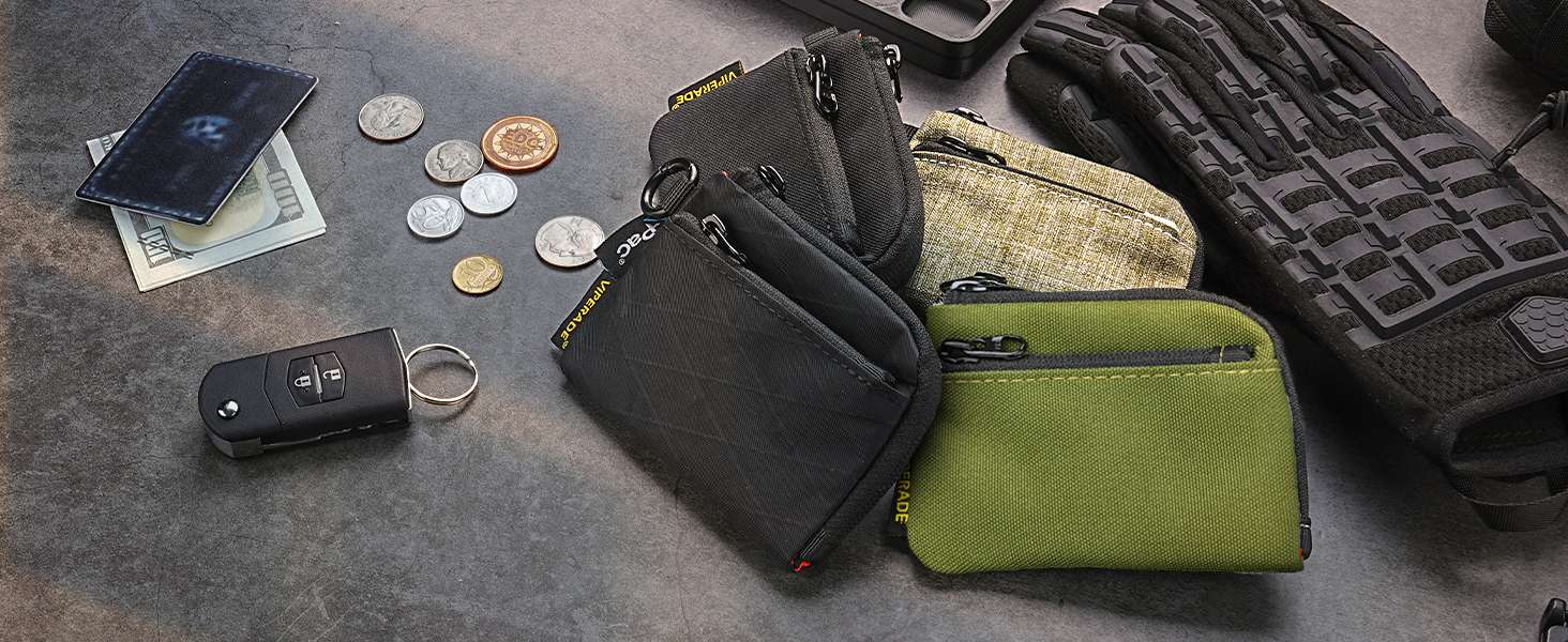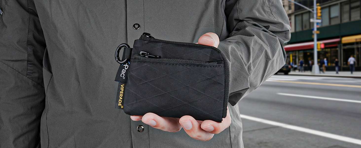 Мини EDC кошелек-органайзер VIPERADE® VE37 X-Pac® Black (Черный). Органайзер имеет 2 отделения на молнии YKK® (Япония). В основное отделение можно прикрепить к брелку, например: ключи от машины, ключи от дома, мини-фонарик. Дополнительно в основное отделение можно поместить купюры. В дополнительное отделение поместятся мелкие вещи или монеты. Кошелек органайзер оснащённый системой MOLLE сзади, VE37 легко крепится к ремням, тактическим жилетам или рюкзакам. Так же кошелек-органайзер оснащён брелоком и карабином, что позволяет легко закрепить брелок, рюкзак, ремень или нагрудную сумку.
