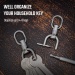 KA40L решает те же задачи, что и младшая модель KA40M, но с поправкой на габариты. Поворотный механизм работает идеально плавно, ключи вращаются свободно, но надёжно, без намёка на люфты и перекручивания. В конструкции нет традиционных движущихся частей, подшипников или магнитов. Только чистая геометрия титана, которой просто нечему ломаться. Два компонента соединителя неразделимы — это гарантия абсолютной надёжности на годы.